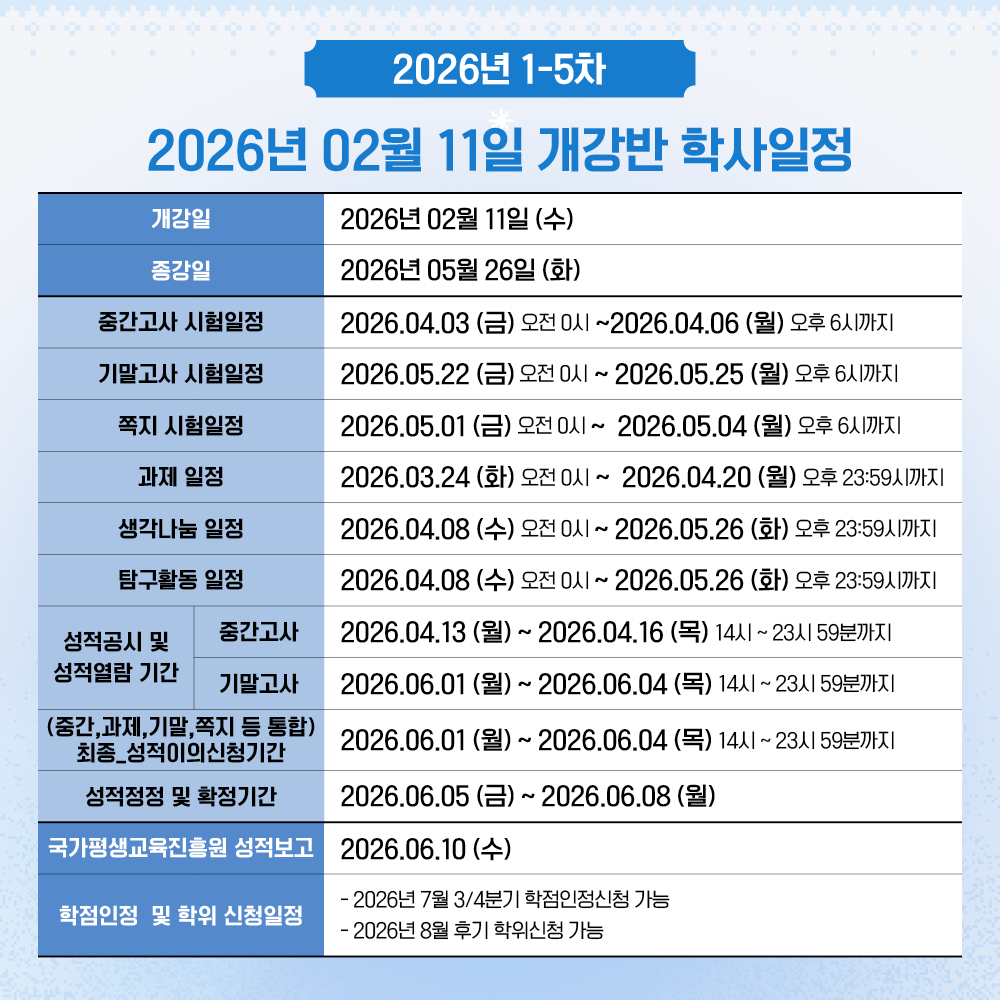 Á¦¸ñ 2026³â 1Çбâ 5ȸÂ÷ 2¿ù 11ÀÏ °³°­¹Ý ÇлçÀÏÁ¤